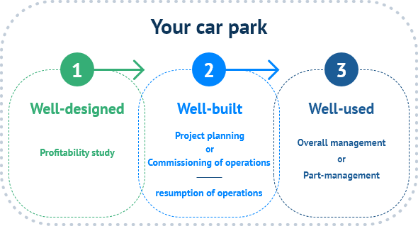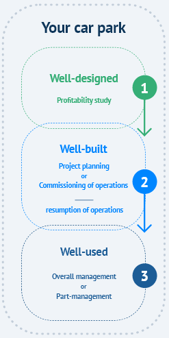 The PARKGEST group adds great value to the planning of your car park projects. Our profitability analysis department will review the impact of your concept in the light of environmental, technological and economic conditions and advise you on the selection of pragmatic and long-term solutions.
